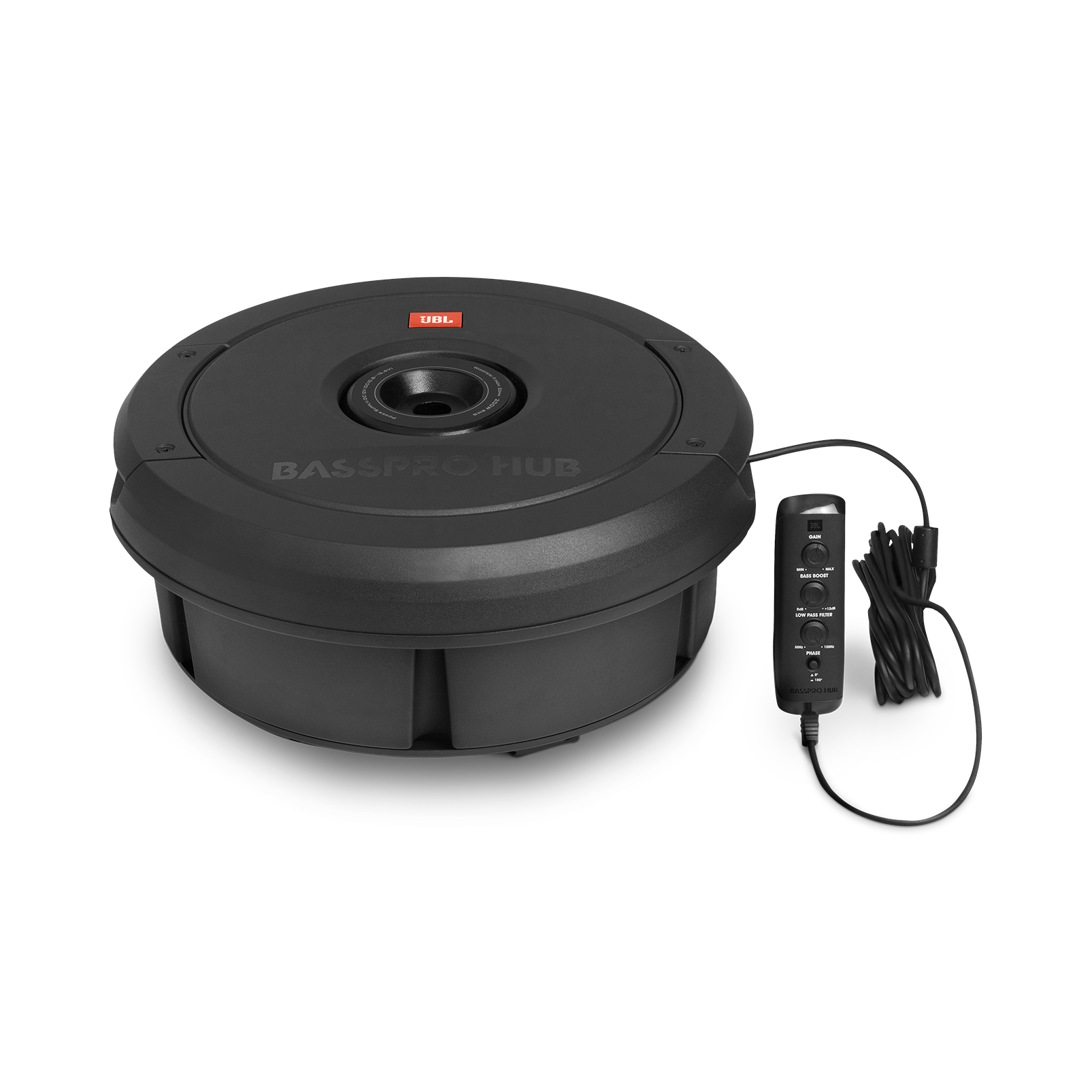 Możliwość instalacji w miejscu koła zapasowego z funkcją łatwego montażu i demontażu. JBL BassPro Hub został wyposażony w wejścia głośnikowe i liniowe. Posiada regulację filtra dolnoprzepustowego i poziomu basu.